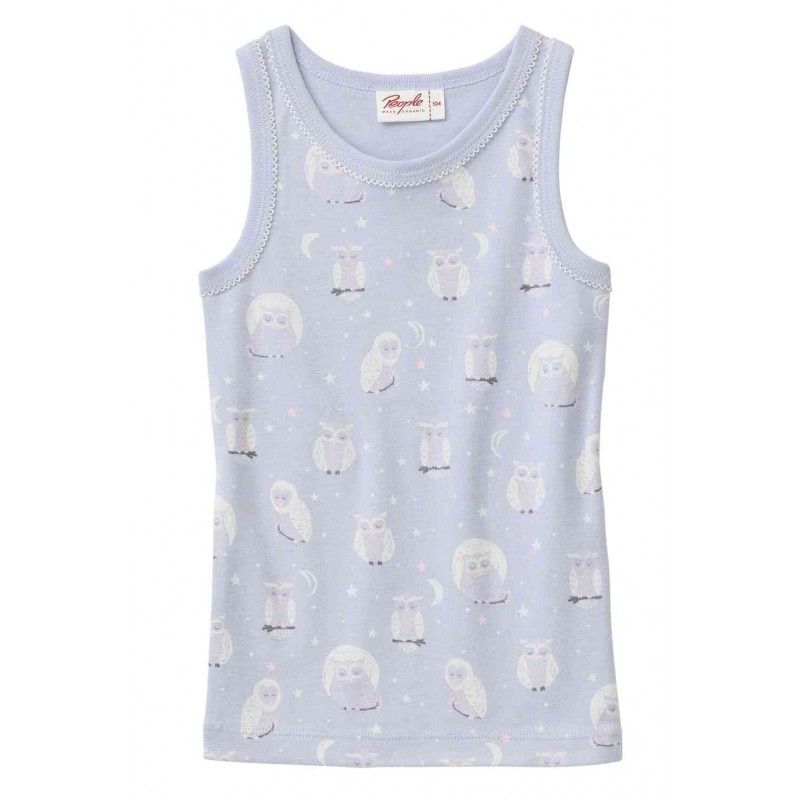 Kuscheliges Kinder-Unterhemd mit Eulen-Allover und feiner Crochet-Spitze – Nachhaltige Wäsche von People Wear Organic
