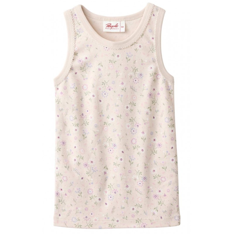 Kuscheliges Kinder Unterhemd mit Frühlingsblumen-Allover und Crochet-Spitze von People Wear Organic.