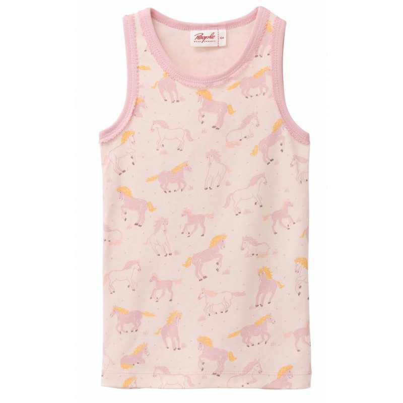Kuscheliges Kinder Unterhemd mit Pferde-Allover und Crochet-Spitze von People Wear Organic.
