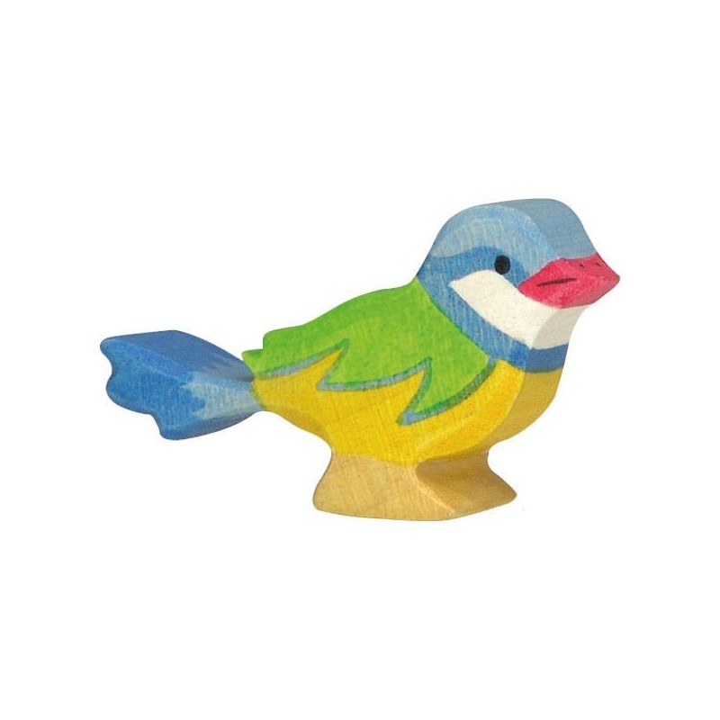Süße Blaumeise aus massivem Ahornholz. Handbemalt mit kinderfreundlichen Farben auf Wasserbasis.