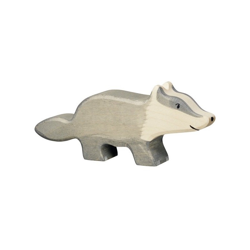 Süßer Dachs aus massivem Ahornholz. Handbemalt mit kinderfreundlichen Farben auf Wasserbasis.