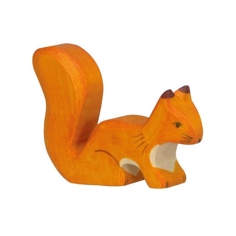 Süßes Eichhörnchen aus massivem Ahornholz. Handbemalt mit kinderfreundlichen Farben auf Wasserbasis.