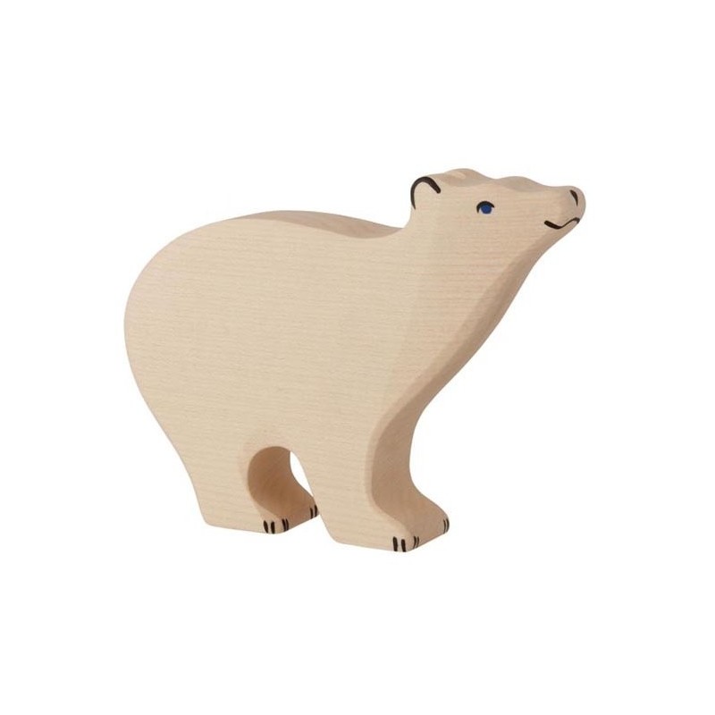 Süßer Eisbär aus massivem Ahornholz. Handbemalt mit kinderfreundlichen Farben auf Wasserbasis.