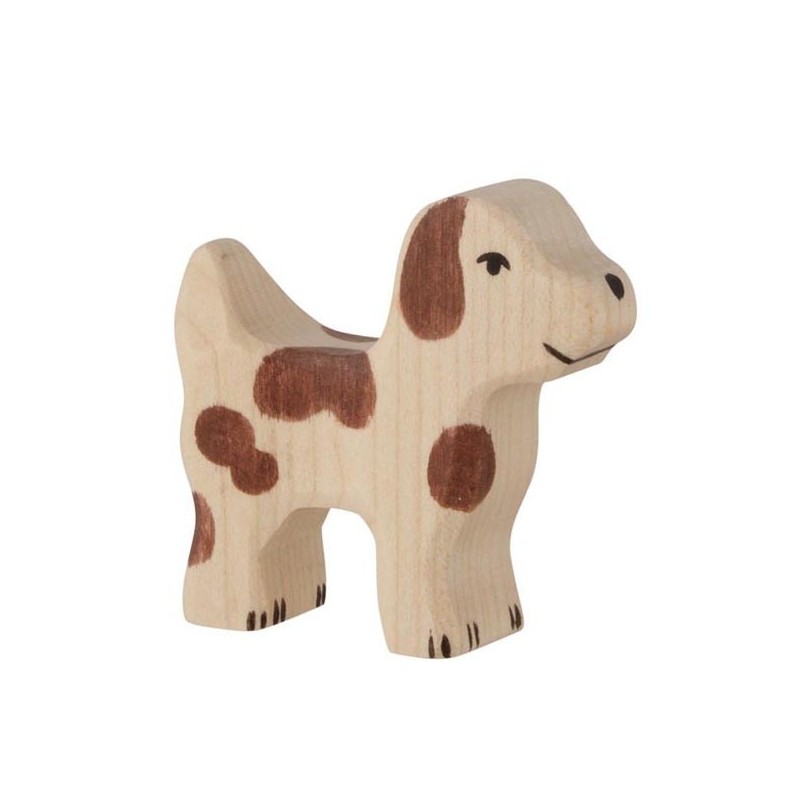 Süßer Hund aus massivem Ahornholz. Handbemalt mit kinderfreundlichen Farben auf Wasserbasis.