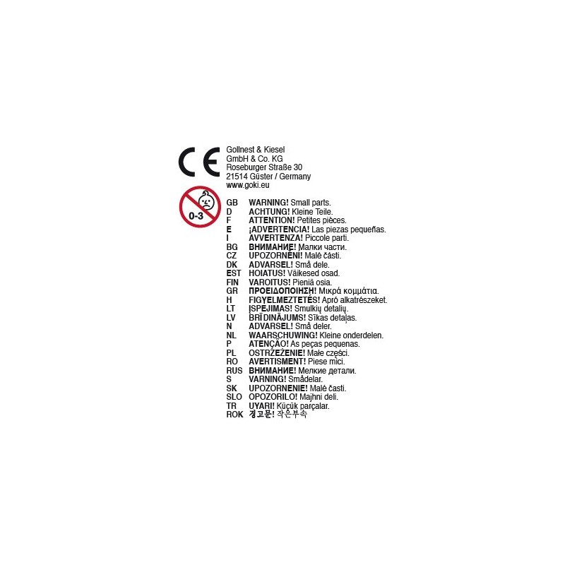 | Warnhinweise | ab 3 Jahren, wegen verschluckbarer Kleinteile und damit verbundener Erstickungsgefahr |