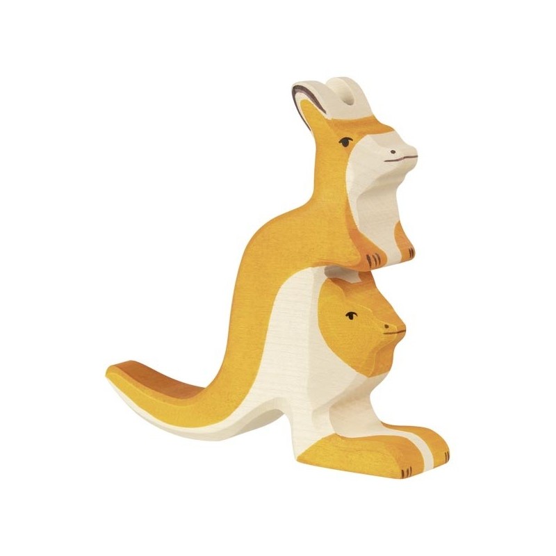 Süßes Känguruh mit Jungem aus massivem Ahornholz. Handbemalt mit kinderfreundlichen Farben auf Wasserbasis.