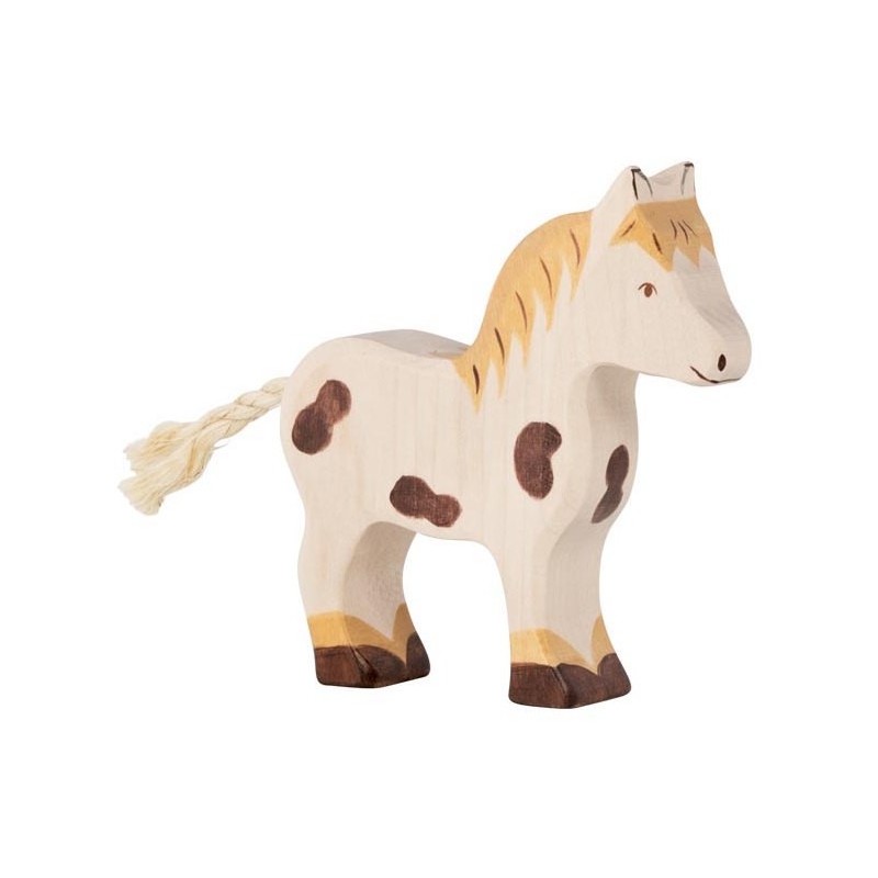 Süßes Pony aus massivem Ahornholz. Handbemalt mit kinderfreundlichen Farben auf Wasserbasis.