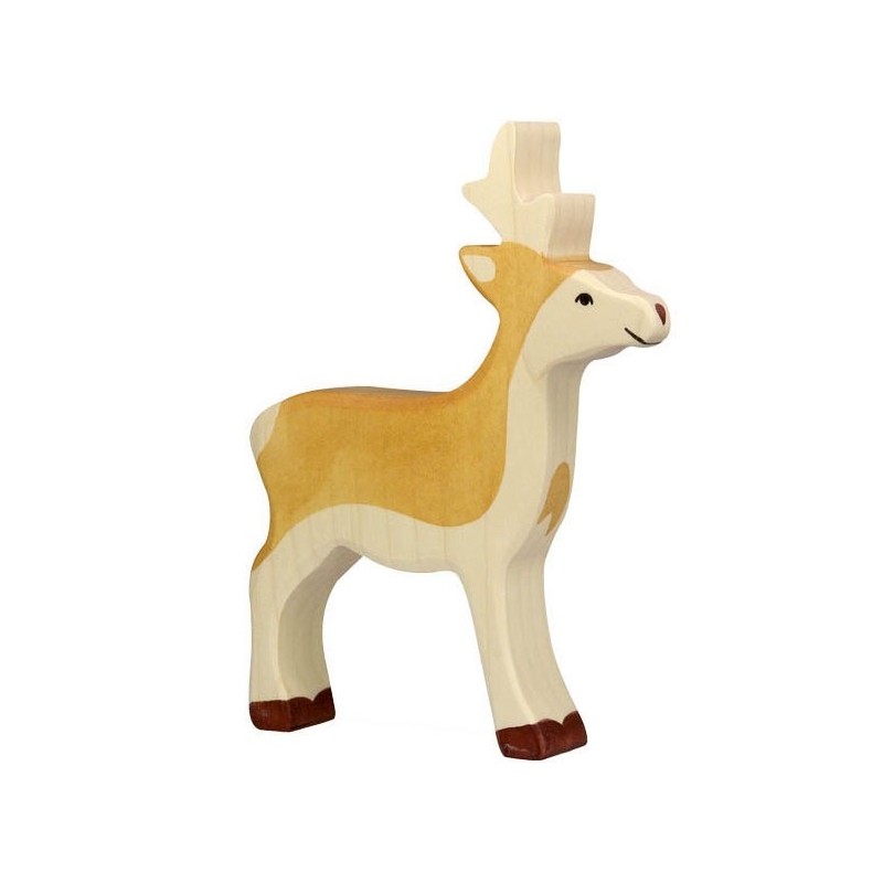 Süßer Rehbock aus massivem Ahornholz. Handbemalt mit kinderfreundlichen Farben auf Wasserbasis.