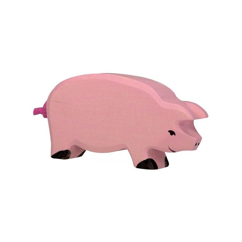 Süßes Schwein aus massivem Ahornholz. Handbemalt mit kinderfreundlichen Farben auf Wasserbasis.