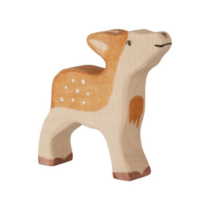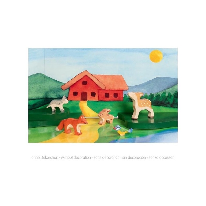 Schönes Waldtiere-Set massivem Ahornholz beinhaltet Hase, Fuchs, Wolf, Kitz und Blaumeise. Handbemalt mit kinderfreundlichen Farben auf Wasserbasis.
